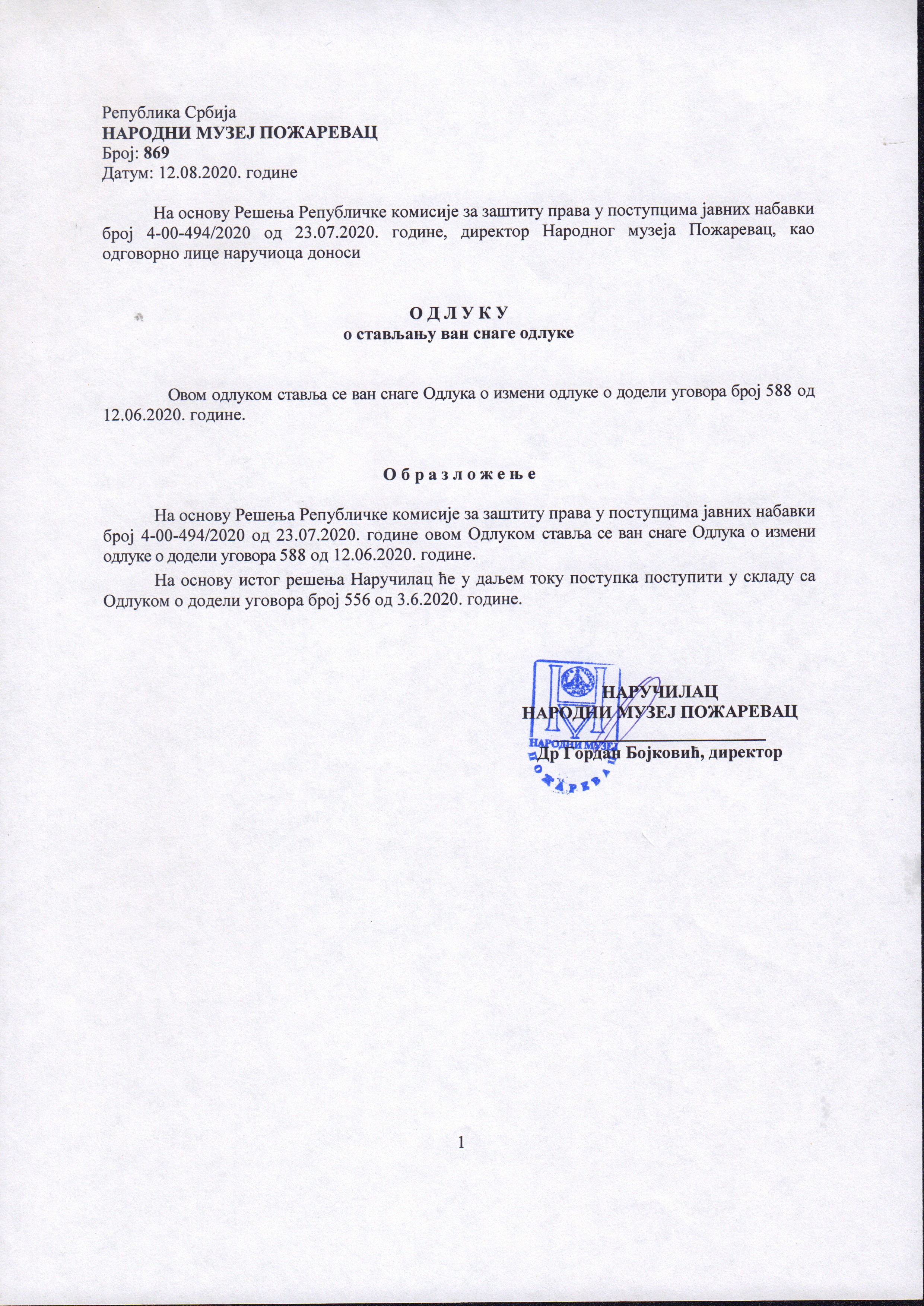 Одлука о стављању ван снаге Одлуке о додели уговора